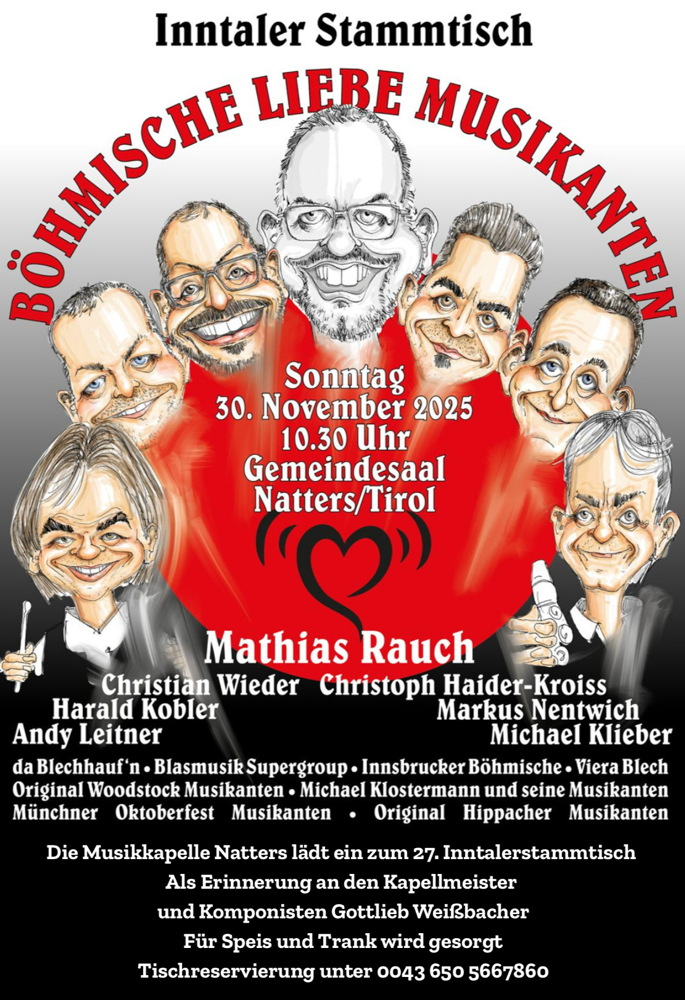 Herzliche Einladung zum 27. Inntalerstammtisch mit den Böhmische Liebe Musikanten! 🎶